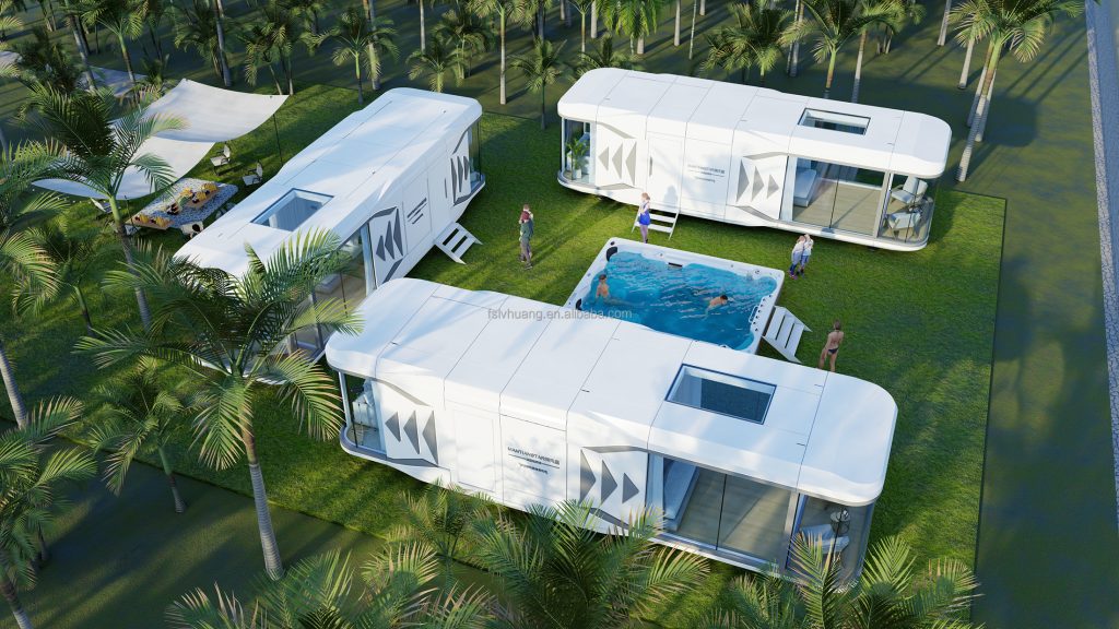 In the evening, our family of three stayed in the spherical space capsule residential hostel. The panoramic french window gave a panoramic view of the surrounding green. The children excitedly pointed to the sky and counted stars. The wife prepared picnic food in the small kitchen inside the capsule house, while I lay on the comfortable big bed of the intelligent space capsule house and watched the sunset through the dome skylight. As night falls, the warm lights illuminate the mini space capsule house in a warm and dreamy way. We sit together playing games, sharing stories, and laughing incessantly. This modular space house is not only avant-garde in design, but also perfectly integrates the comfort of home, making parent-child time more enjoyable.