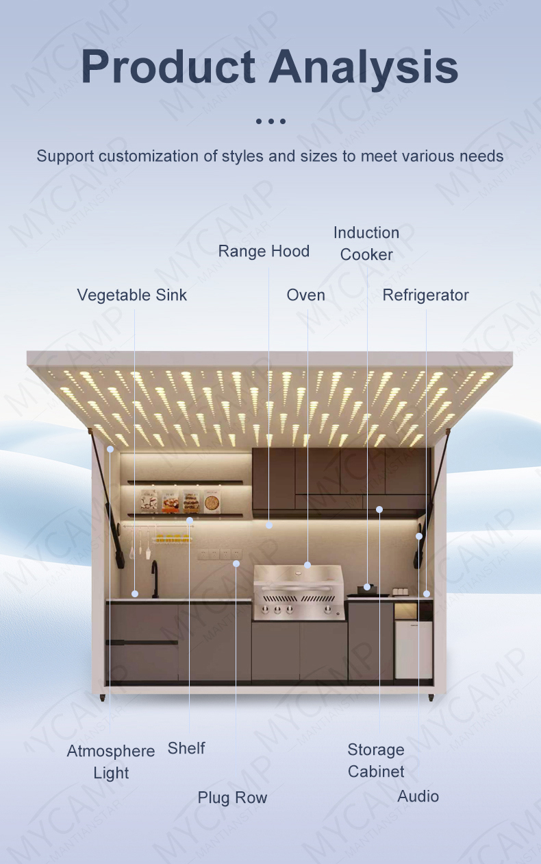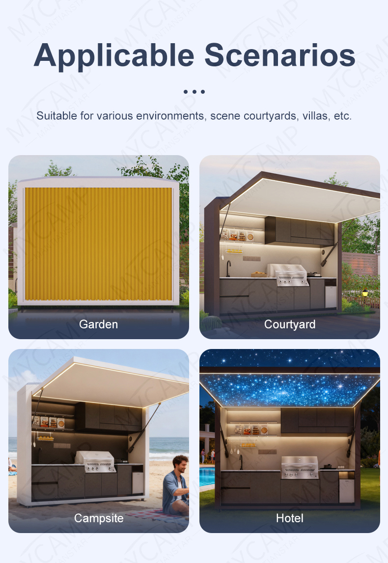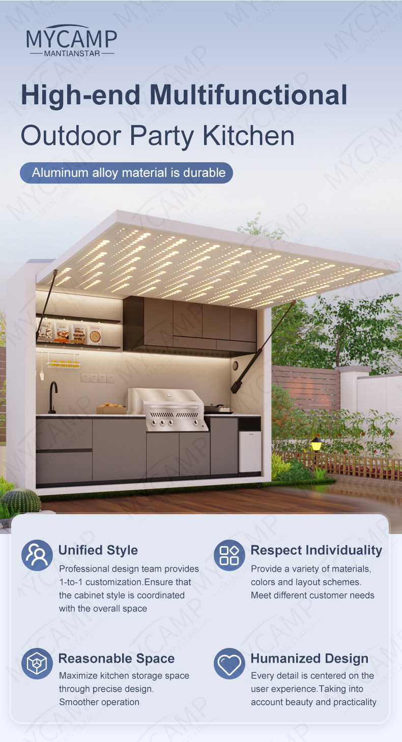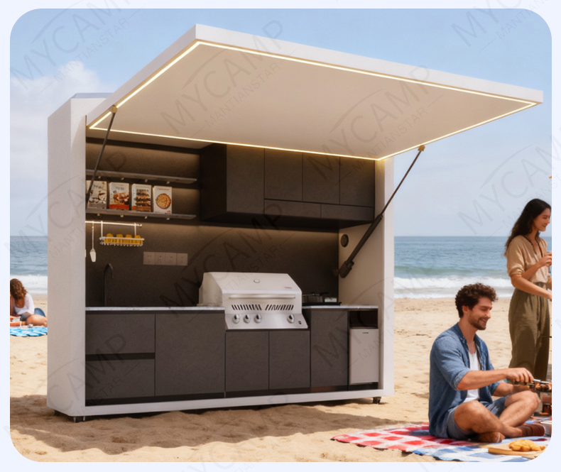 Functional Zoning: From prep stations and cleaning areas to cooking centers, a seamless workflow makes outdoor cooking as effortless as indoor culinary experiences.